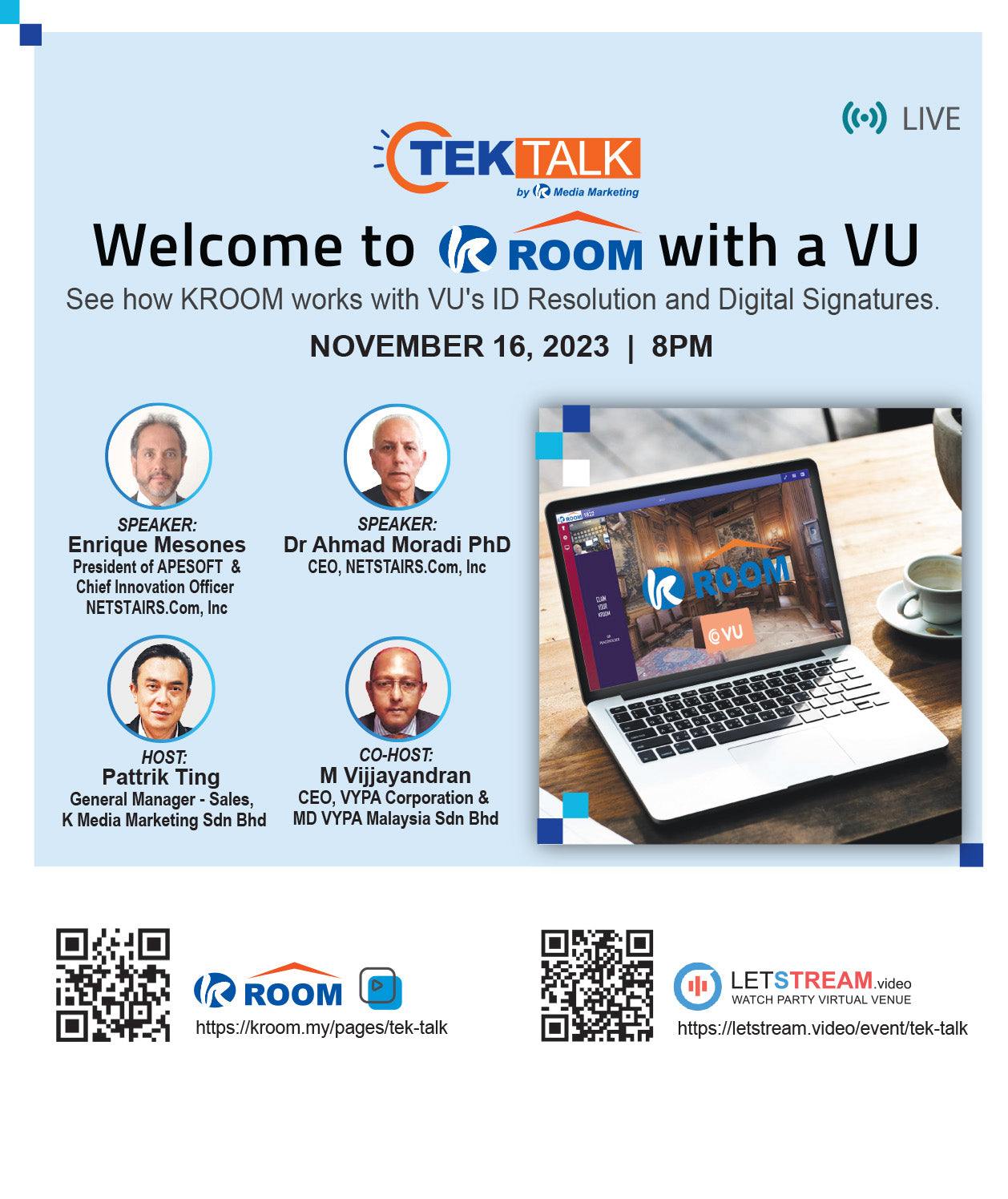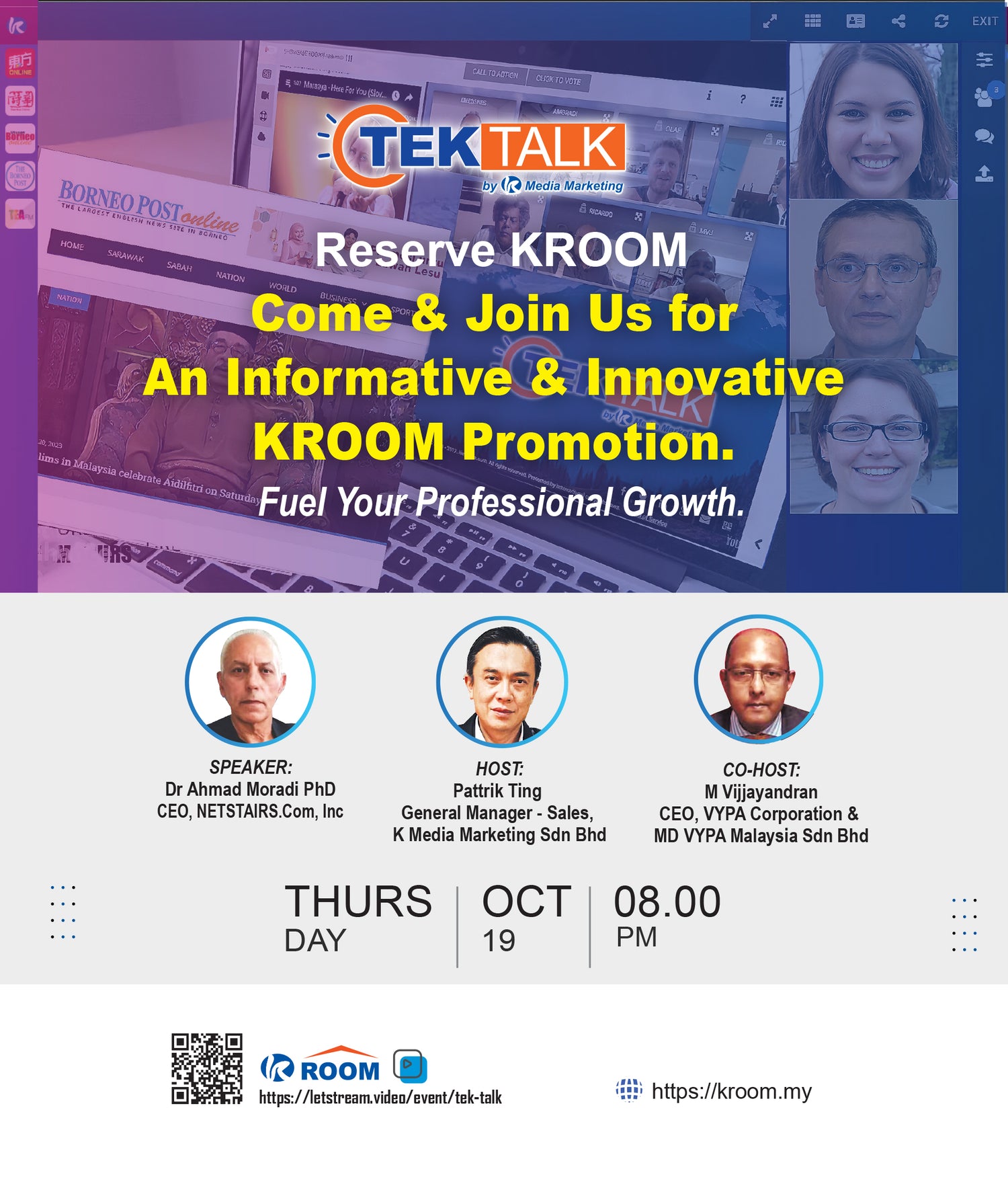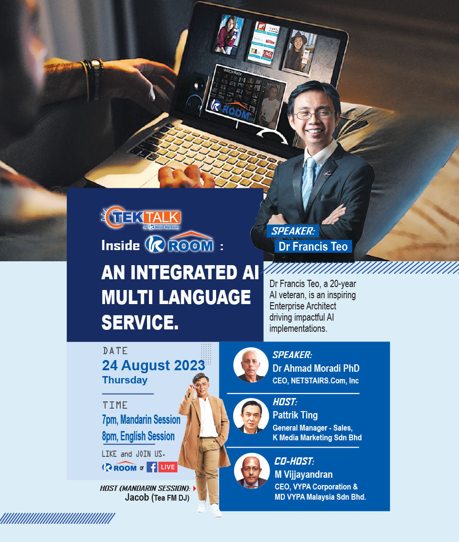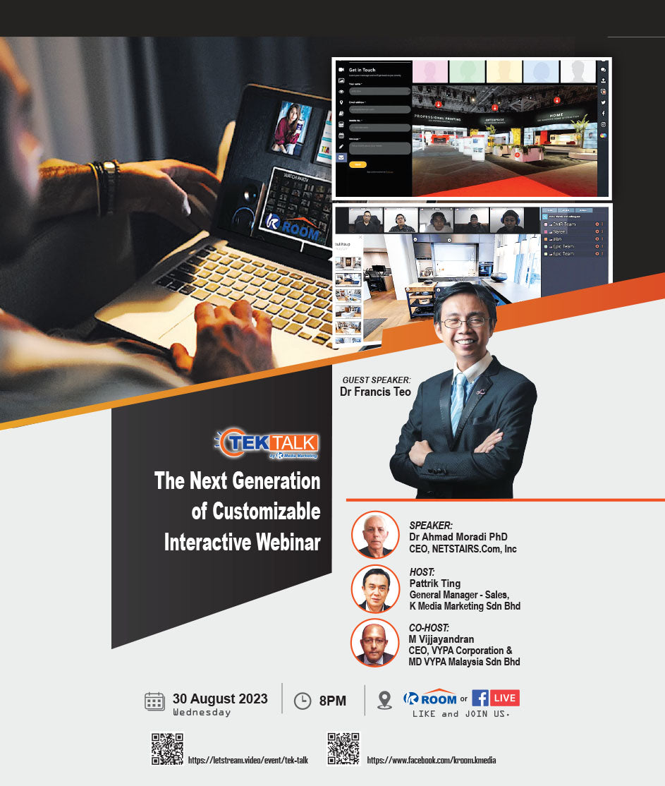 30 August 2023. Come and learn how KROOM makes your webinars stand out. Don’t miss this opportunity, hurry up and get your exclusive KROOM! Join Tek Talk now!