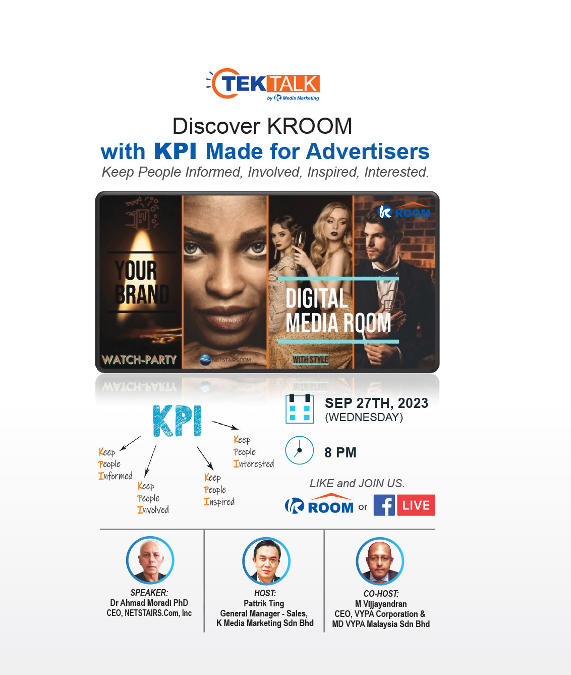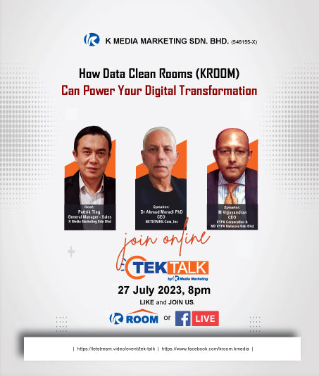 27 Sept 2023. Do you want to discover KROOM Data Clean Room with KPI made for advertisers? Join Tek Talk now! You will be surprised! Don’t miss this opportunity, hurry up and get your exclusive KROOM!